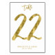 Tarjetas de número de tabla boda - Número 22 - con efecto de Relieve metalizado dorado (imitación, impresión como imagen) y texto de personalizable - puede añadir el nombre de la novia y del novio y la fecha de boda impresa en fondo blanco