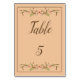 Se presentan aquí espectaculares letreros de mesa para bodas rústicas. Este diseño presenta un fondo beige melocotón con texto escrito en marrón. También hay un borde marrón. Muy fácil de personalizar, ordene el suyo hoy.