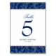 Tarjeta De Mesa Boda Swirl Navy Blue y Rubor Pink Damask