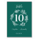 Verde Esmeralda, elegante, moda, guión, número de tabla Boda de caligrafía. Sencillo, minimalista, floral. A la moda, números de tabla de presupuesto. Puede personalizar con sus nombres, número y fecha.