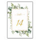 Cuadro 14. Compruebe todos los números disponibles. | Este número de tabla boda presenta la vegetación de eucalipto de color de agua pintada y hojas verdes con un marco rectangular falso purpurina de oro, texto y número. Para una personalización más avanzada de este diseño, haga clic en el BOTÓN HERRAMIENTA DE DISEÑO AZUL de arriba.