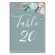 Tarjeta de número de mesa de recepción de boda de verano en verde salvia diseñada con un racimo de flores suaves pastel rosa y verde salvia. El texto incluye: Mesa y un número, sobre un fondo verde salvia - tanto en el frente como en el reverso. Para personalizar, simplemente inserte un solo número para cada tarjeta requerida. Tenga en cuenta que el número se repetirá automáticamente en el reverso. Asegúrese de ver la colección completa de bodas de verano en verde salvia para papelería y accesorios de recepción a juego.