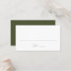 Las tarjetas bodas modernas incluyen un guión de caligrafía verde oliva sobre un fondo blanco. En la parte posterior de las tarjetas del lugar de color verde oliva se muestran las iniciales de su monograma con la fecha de su boda que se muestra a continuación. Las elegantes tarjetas de escritura son perfectas para recepciones de bodas modernas, cenas de ensayo y otros eventos especiales.