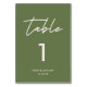 Una carta con un número de mesa verde oliva simple y elegante. Personalizar con sus nombres y fecha de boda en la parte inferior.