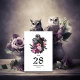 Tarjetas de número de mesa de boda góticas de búhos florales vintage caprichosas en acentos de malva personalizables a los detalles de su evento.