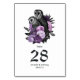 Tarjetas de número de mesa de bodas góticas de búhos florales vintage caprichosas en acentos de púrpura personalizables para los detalles de su evento.