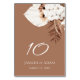 Número de mesa del Boda Floral Boho Terracotta Brown Pampas Grass Floral - Esta tarjeta de número de mesa boda boho tiene un fondo marrón de terracota adornado con pasto pampas, flores secas y orquídeas blancas. Una adición de moda para guiar a los huéspedes en la recepción mientras realza la decoración rústica, terrenal y moderna de boho.