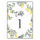 Boho Watercolor Lemon Wreath Tabla 1 Número de tabla. Tarjeta numérica inspirada en Boho con corona de limón de color agua. Luminoso y caprichoso, perfecto para bodas de primavera y verano, duchas de novias y mucho más.