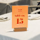 Tarjeta De Mesa Bold Modern Orange Sunset Monogram Wedding Seat