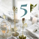 The simple yet sophisticated design allows the table number to stand out clearly while maintaining a graceful aesthetic that complements eucalyptus arrangements, greenery centerpieces, and botanical-themed decorations. Its balanced composition keeps the look polished and timeless while helping guests easily find their assigned tables.