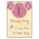 Bonita tarjeta de mesa de estilo Bunco con tonos rosas peones. El bonito diseño cuenta con una mariposa y flores. La tarjeta de mesa Bunco o Bunko es perfecta para añadir un poco de color a la mesa y para ayudar a los huéspedes a pasar de la mesa a la mesa. Tarjeta número uno de tres.