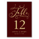 Tarjeta De Mesa Burgundy Whimsical Gold Calligraphy Número de tabl