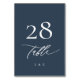 Caligrafía azul blanca y marina Número de mesa Boda moderno - moderno e impresionante - parte de una colección