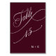 Tarjeta De Mesa Caligrafía de lujo Boda de Borgoña número 15,