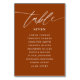 Rust Terracotta Simple Caligrafía Rústica Cuadro de Bodas Número de tabla