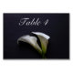 Tarjeta De Mesa Calla se asienta en un fondo oscuro