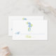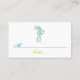 Caballo de mar y tarjeta de asiento boda verde azul y de algas marinas con caballito de mar azul y algas verde limón sobre fondo blanco. Este caprichoso diseño de plantilla forma parte de un conjunto de bodas perfecto para una boda de verano en la playa. Es completamente personalizable.