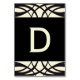 Cartas de pancartas de Boda de estilo Art Deco con crema negra con carta que se puede personalizar. Elke Clarke© Disponible en www.zazzle.com/monogramgallery. Debe rellenar una tarjeta por cada letra que desee y añadirla a su carrito. El bonito patrón de remolinos negros y el elegante tipo de letra de guión le dan flexibilidad para crear cualquier texto para un banner que pueda alinearse con twine para decorar cualquier área o estación en la recepción de su boda
