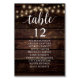 Tarjeta de tabla de mesa de boda para la cena, guión rústico moderno, luces de cadena, Personalizar de fondo de madera oscura el texto y / o eliminar y completar con el tema de tu fiesta de boda.