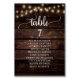 Tarjeta de tabla de mesa de boda para la cena, guión rústico moderno, luces de cadena, Personalizar de fondo de madera oscura el texto y / o eliminar y completar con el tema de tu fiesta de boda.