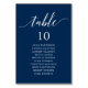 Tarjeta de tabla de mesa de boda para la cena, romántico de estilo moderno, con temática azul marino Personalizar el texto y / o eliminar y completar con el tema de tu fiesta de boda.