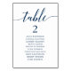 Tarjeta de tabla de mesa de boda para la cena, romántico de estilo moderno, con temática azul marino Personalizar el texto y / o eliminar y completar con el tema de tu fiesta de boda.