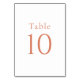 Sencilla y elegante, con un atractivo minimalista, esta bonita tarjeta boda con un número de mesa en blanco y un texto naranja de cítricos tiene un aspecto moderno y limpio. No importa el color que se utilice para las flores de boda, las damas de honor o la vestimenta de los novios, la sencillez de los números de las mesas permite que brille el esquema de color boda. NOTA: Para crear una tarjeta de tabla para cada tabla, debe crearla una a la vez. Edite el número de tabla, es decir, la tabla 1 y añada al carro. A continuación, edite la tabla número 2 y añada al carro. Haga esto por cada tabla que necesitará hasta que haya creado todos los números. Una vez que se hayan agregado todos al carrito, puede completar el proceso de desprotección.