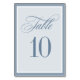 These elegant, luxe wedding table numbers feature a dusty blue border and a lighter blue and white design. There is a mix of classic text and modern calligraphy for a classy and minimalist design perfect for your timeless, formal reception.
