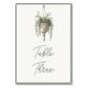 Presentamos nuestra exclusiva tarjeta de número de mesa, una impresionante mezcla de sofisticación y elegancia inspirada en la naturaleza. Esta tarjeta de número de mesa meticulosamente elaborada presenta una delicada ilustración de acuarela de una planta colgante, artísticamente suspendida en un elegante colgador de macramé. El diseño dibujado a mano emana un sentido de sofisticación ligera, lo que la convierte en la adición perfecta para cualquier evento moderno y elegante.