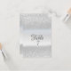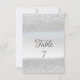 Tarjeta de mesa con bokeh de brillo plateado elegante.