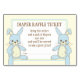 Un estupendo boleto de rifa de pañal para insertarlo en el sobre para incluir con sus invitaciones para la ducha de bebé. Invita a los invitados a traer pañales para que la futura madre entre en una rifa de premios. Adorables conejitas gemelas decoran la parte delantera y trasera de la tarjeta - especialmente apropiada para una madre que espera gemelos!