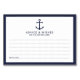 Tarjeta de consejos y deseos para Bodas del Ancla Azul de la Marina Náutica moderna con ancla azul marino con título en sans modernos azul marino sobre fondo blanco con borde azul marino. Perfecto para boda, ducha de bebé, fiesta de cumpleaños, ducha de novia, soltera y cualquier ocasión especial.