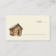 This charming wedding place card features a cozy log cabin illustration, evoking a rustic and whimsical feel. The design uses earthy tones of brown, beige, and muted yellow to create a warm and inviting atmosphere. With ample negative space around the cabin, the layout is simple yet balanced, highlighting the solitary dwelling's peacefulness. The elegant serif font adds a classic touch, making it perfect for setting a tranquil and homely tone at your special event.