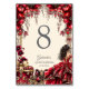 Tarjeta De Mesa Cream and Red Golden Tiara Floral Quinceañera