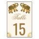 Elegant table number card featuring beautifully decorated elephants.