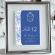 Tarjeta De Mesa Crest Monogram Delft Blue Floral Script