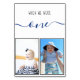 Una manera moderna y más original de personalizar los números de tu mesa con fotos de la infancia de la novia y el novio a esa edad (la predeterminada es una). Las fotos de un marcador de posición de una niña (la novia) y un niño pequeño (el novio) están en marcos negros, en la mitad inferior. En la parte superior, está el mensaje "cuando éramos uno" con la edad escrita en un guión de escritura a mano azul marino y el resto arriba, en gorras negras más pequeñas (letras de mano). Las fotos de los marcadores de posición son de Public Domain Pictures y son gratuitas para uso comercial.