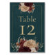 Tarjeta De Mesa Dark Teal Floral Gothic Wedding Table Number