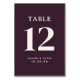 Esta elegante tarjeta de mesa para bodas presenta un fondo granate profundo con tipografía serif blanca crujiente, creando un aspecto sofisticado y atemporal. El diseño es simple pero refinado, con el número "12" que se muestra de manera prominente en negrita en el centro, rodeado de amplio espacio negativo para una apariencia limpia. El texto personalizable permite la personalización, lo que lo hace perfecto para marcar arreglos de asientos especiales en su evento. El estilo clásico y la elegancia discreta hacen que esta tarjeta sea ideal para bodas formales o reuniones, lo que garantiza una comunicación clara y agrega un toque de clase a su decoración.