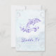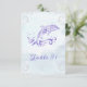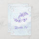 Mesas de recepción con una tarjeta de la recepción de la boda de delfines púrpura. El diseño de la tarjeta de mesa incluye un delfín de estilo metálico con un fondo de olas oceánicas mudas adornado con elegantes rollos. También hay material de boda adicional disponible con este diseño.