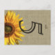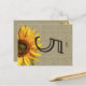 Una falsa apariencia de burlap con un girasol. Personalizar esta postal de girasol con tu propio texto. Hace un gran mantel.