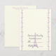 Tarjeta de mesa de boda en París con la Torre Eiffel lila. Un diseño elegante lleno de clase y delicadeza, con la Torre Eiffel en lila en un borde de damasco sobre fondo marfil. Dobla la tarjeta por el centro.
