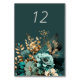 Tarjeta de mesa de Boda floral verde azulado Gold