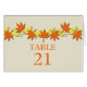 Tarjeta número de mesa de borde de hojas de otoño, sencilla y elegante, con una hilera de hojas de otoño rústicas en naranja y amarillo. ¡Este diseño de moda es perfecto para tu boda de otoño! Fácil de personalizar, simplemente agregue los números de tabla apropiados en el campo de texto proporcionado. Para encontrar opciones de personalización adicionales, haga clic en "Personalizar".