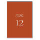Esta tarjeta de mesa de mandarina es lo suficientemente buena para comer. El número se muestra en una tipografía serif limpia. La parte posterior es idéntica a la frontal para facilitar su uso.