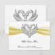 Tarjeta de mesa de cisnes de plata con cinta amari