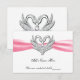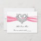 Tarjeta de mesa de cisnes de plata con lazo rosa