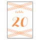 Tarjeta de número de mesa Boda de decoración moderna, sencilla y elegante, con un diseño Art Deco de rayas cruzadas en naranja. Esta tarjeta de mesa clásica se puede personalizar fácilmente con los detalles de su boda. Para obtener más opciones de personalización, haga clic en el botón Personalizar.