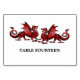 Perfecto para un sofisticado boda con temática de juego de mesa de fantasía, esta elegante y única tarjeta de mesa Boda de Dragones con un par de dragones rojos de colores vivos. Fácil de personalizar, simplemente agregue los números de tabla apropiados en el campo de texto proporcionado. Haga clic en "Personalizar" para buscar opciones de personalización adicionales.