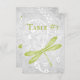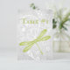 Número de mesas de recepción con una tarjeta de la recepción de la Boda Verde de la Boda. El diseño de la tarjeta de mesa incluye una libélula vibrante contra un elegante fondo de pardo gris y vid floral. También hay material de boda adicional disponible con este diseño.